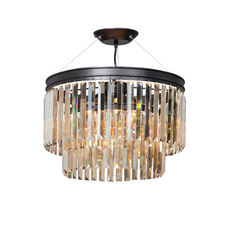 Люстра подходит для помещений от 16 м². Черный матовый металл в сочетании с хрусталем создает баланс строгости и роскоши, что делает модель универсальной для разных стилей интерьера — от классического до хай-тек.Технические характеристики: